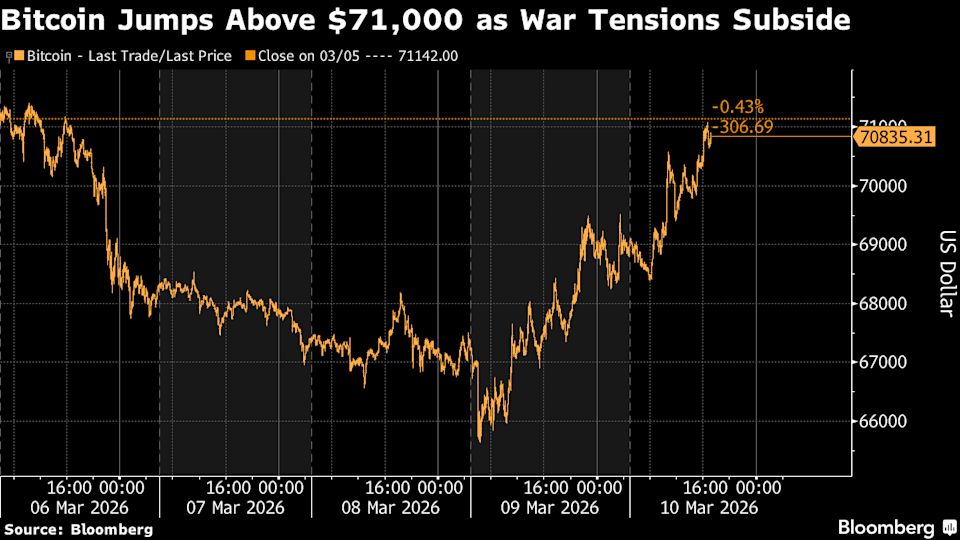 (Bloomberg) — Bitcoin (BTC-USD) rose above $71,000 for the first time in four days as concerns over the war with Iran eased following comments from US President Donald Trump.