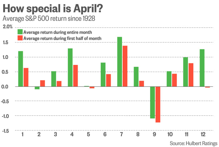 The bottom line: You may want to remain invested in equities during April or even increase your holdings. If you do, though, it shouldn’t be because of the calendar. Given the year-to-year volatility in monthly returns, April’s advantage over other months is not significant at the 95% confidence level that statisticians often use to assess whether a pattern is genuine. That means it would be too risky for you to bet that April will be a good month for the stock market.